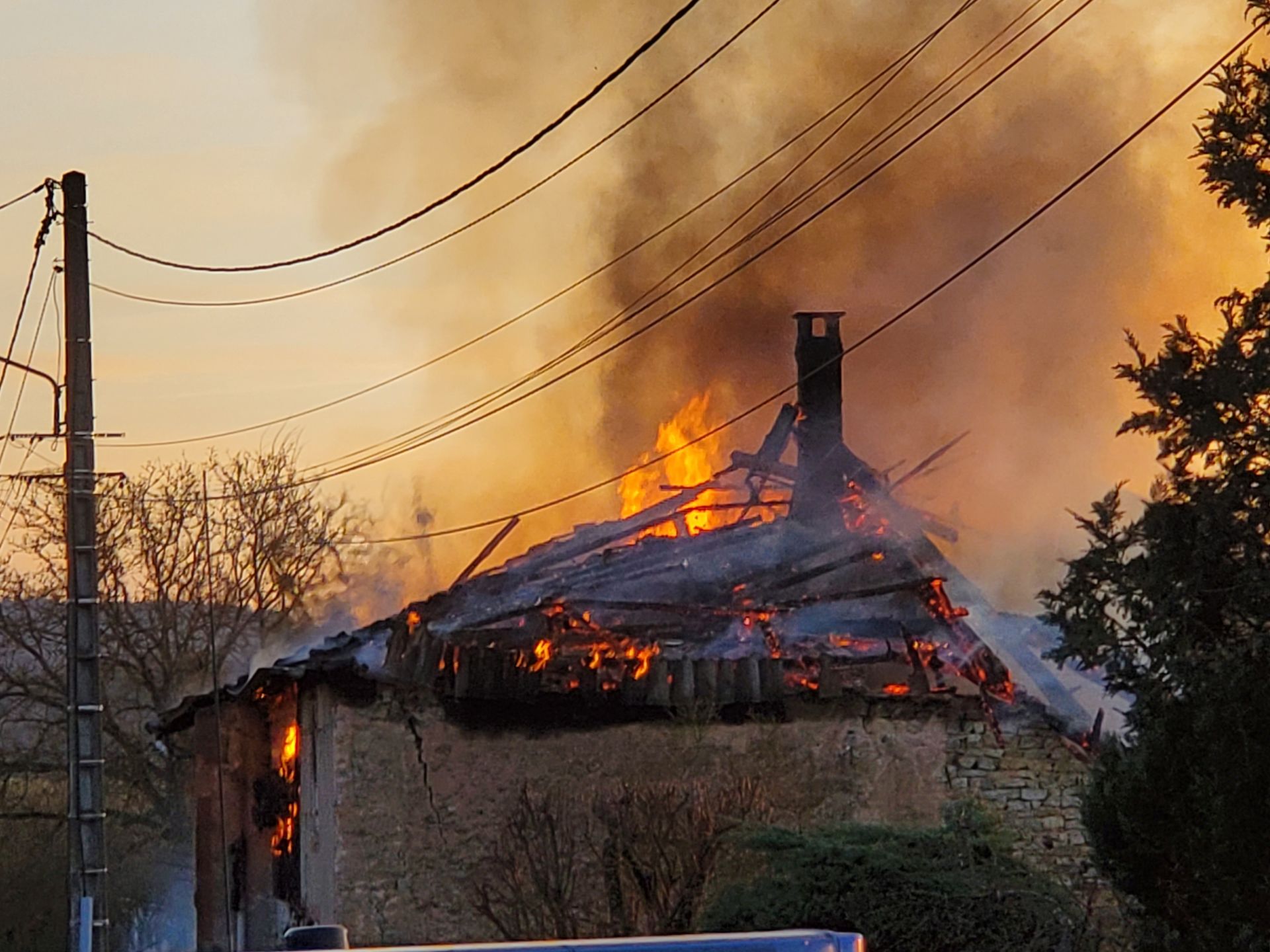 Situé route de Dompierre, ce corps de ferme, dédié entre autres au stockage de matériel agricole et à l'entreposage de fourrage, s'est rapidement embrasé. Les causes de ce départ de feu sont pour le moment encore inconnues, mais les flammes se sont propagées sur l'ensemble du bâtiment, atteignant très vite la toiture qui a pris feu à son tour.