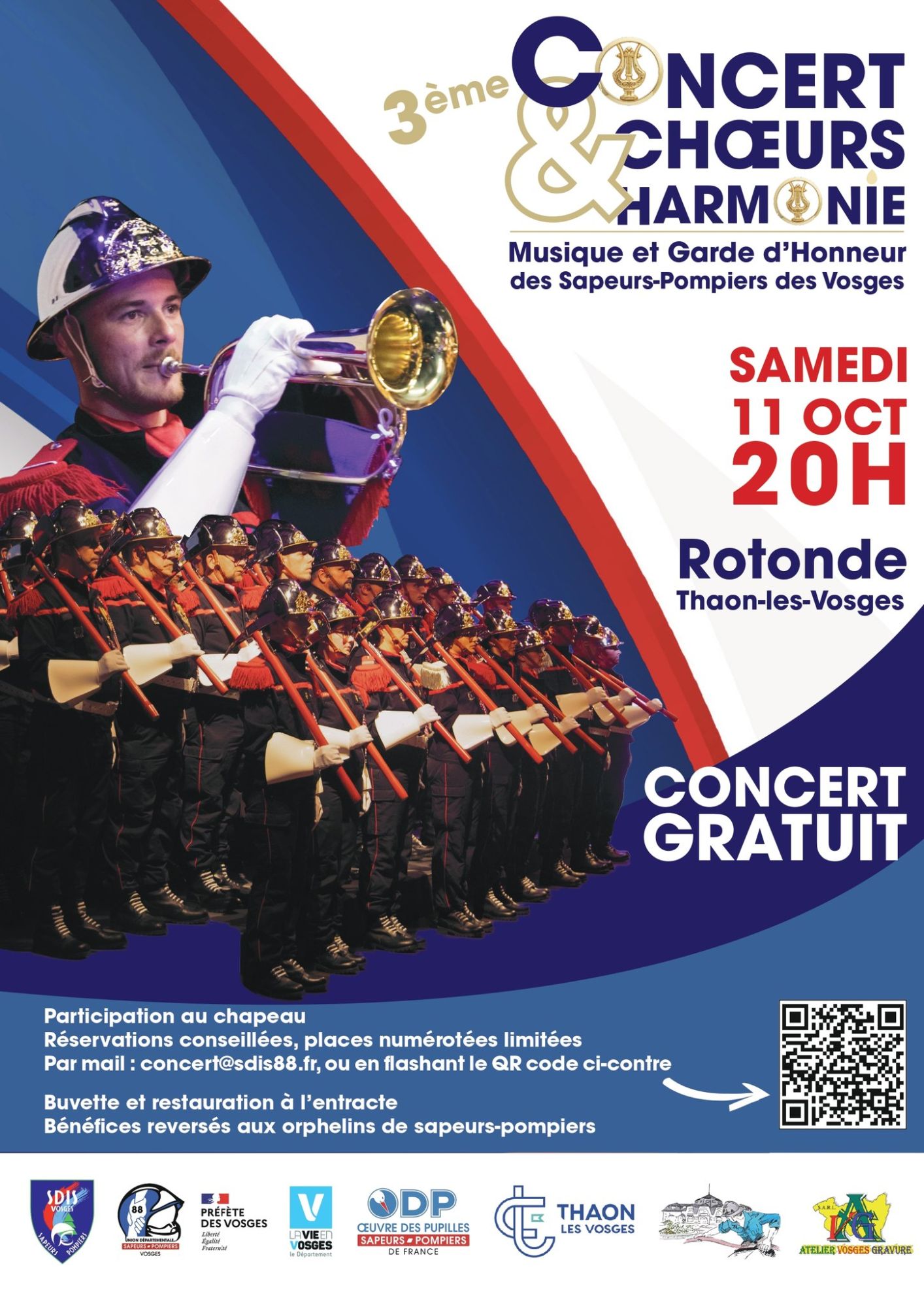 Concert caritatif des sapeurs-pompiers le 11 octobre à Thaon-les-Vosges au profit des pupilles et orphelins. Entrée libre, participation au chapeau.
