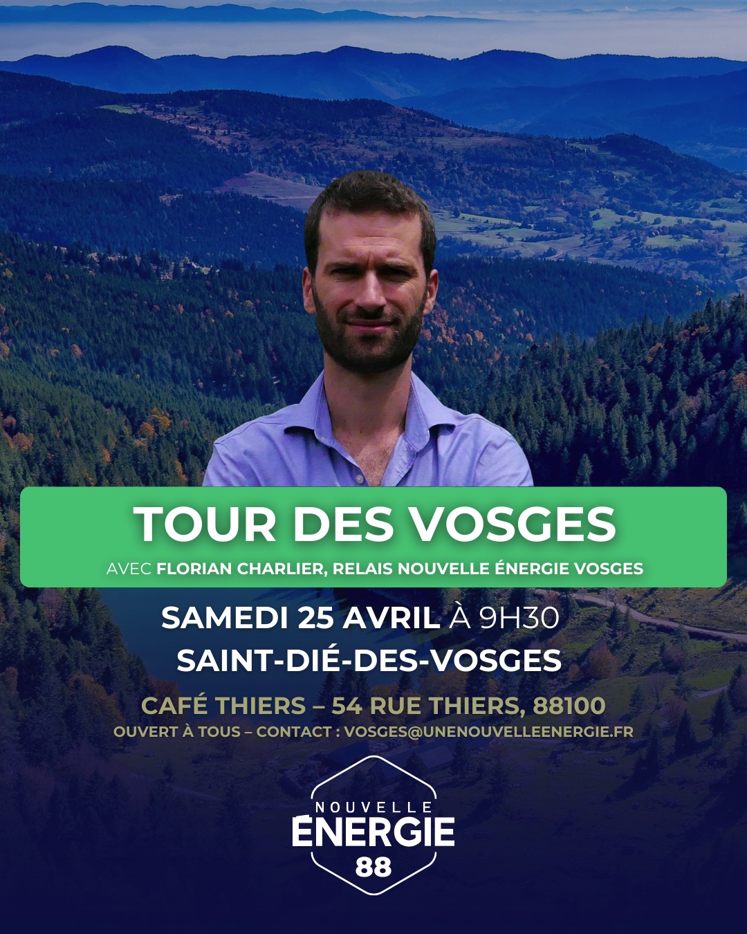 Le mouvement Nouvelle Énergie lance un Tour des Vosges pour rencontrer les habitants. Première étape le 25 avril à Saint-Dié-des-Vosges.