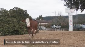 De la paille, du fumier déversés devant la fromagerie Marcillat-Lactalis à Corcieux, des tracteurs pour empêcher les entrées et sorties des camions, mais aussi deux vaches Odorante et Occasion "joueuses" qui ont quitté leur ferme et pris leurs quartiers devant l'usine : ce jeudi, les syndicats agricoles majoritaires, les Jeunes Agriculteurs 88 et la FDSEA des Vosges ont mené des opérations coup de poing pour protester contre la baisse du prix d'achat du lait au producteurs en deça des coûts de production depuis ce début d'année et dénoncent les pratiques industrielles et commerciales.